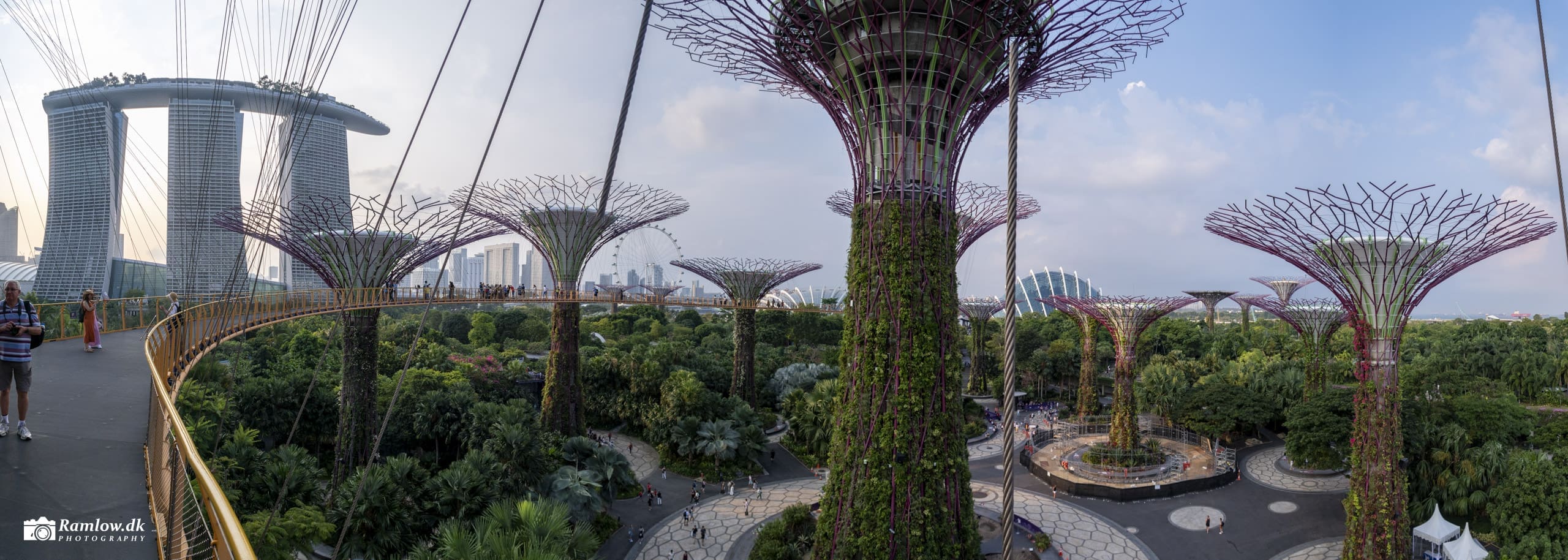 Det ikoniske kompleks består af tre 57-etagers tårne, der er forbundet af en spektakulær tagkonstruktion – SkyPark – udformet som et kæmpe skib. Øverst oppe findes en infinity pool, der er forbeholdt hotellets gæster, samt rooftop barer og udsigtsplatforme med panorama over hele byen, havnen og strædet mod Indonesien.