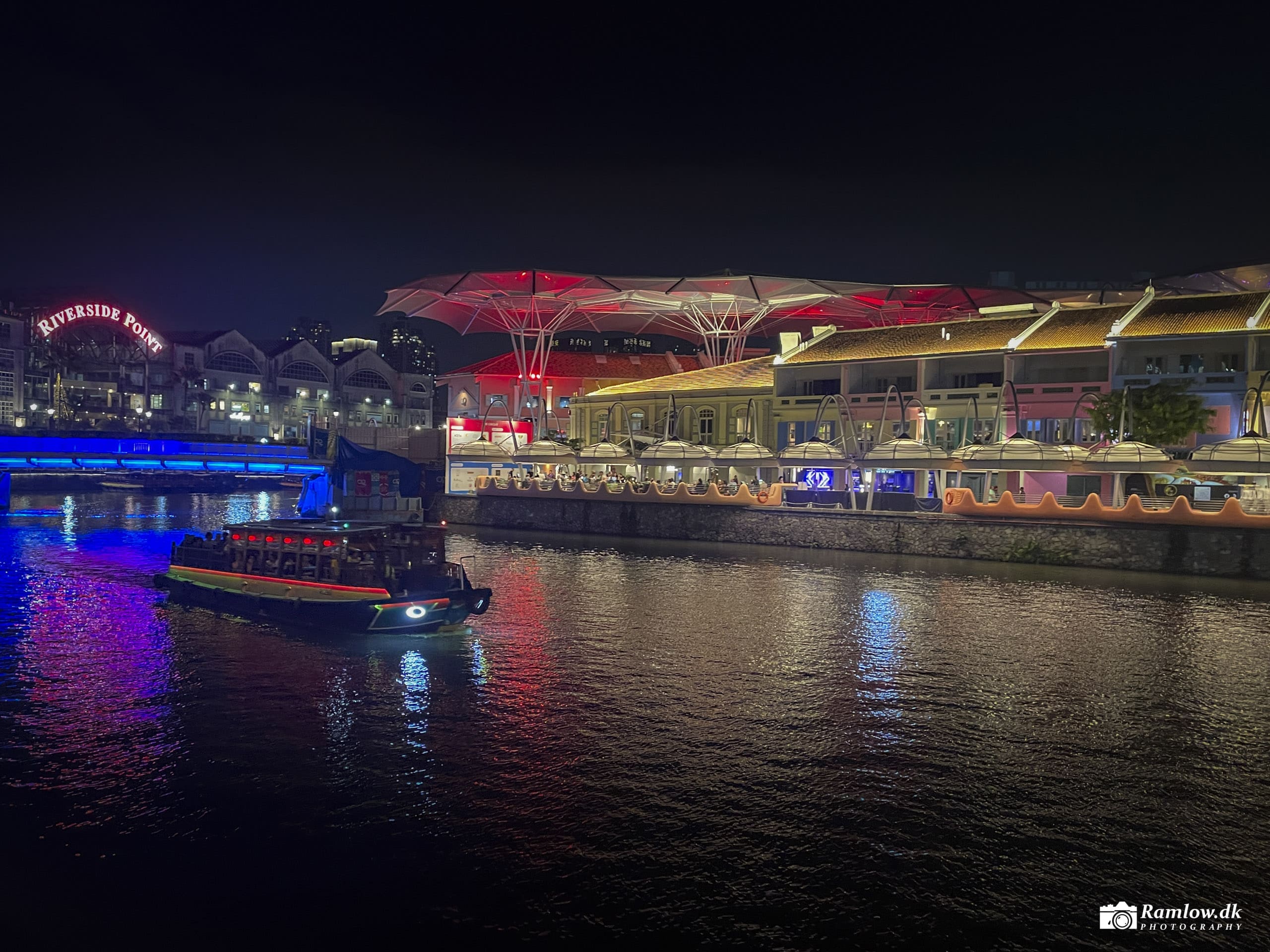 Flodens rytme er byens puls. Ved Clarke Quay og Riverside Point folder Singapores natteliv sig ud med barer, restauranter og bådture. Det er her, folk samles – lokale og turister – midt i en arkitektonisk kulisse, hvor neonlys, farver og former smelter sammen i et panorama og i et sammensurium af musik og mad.