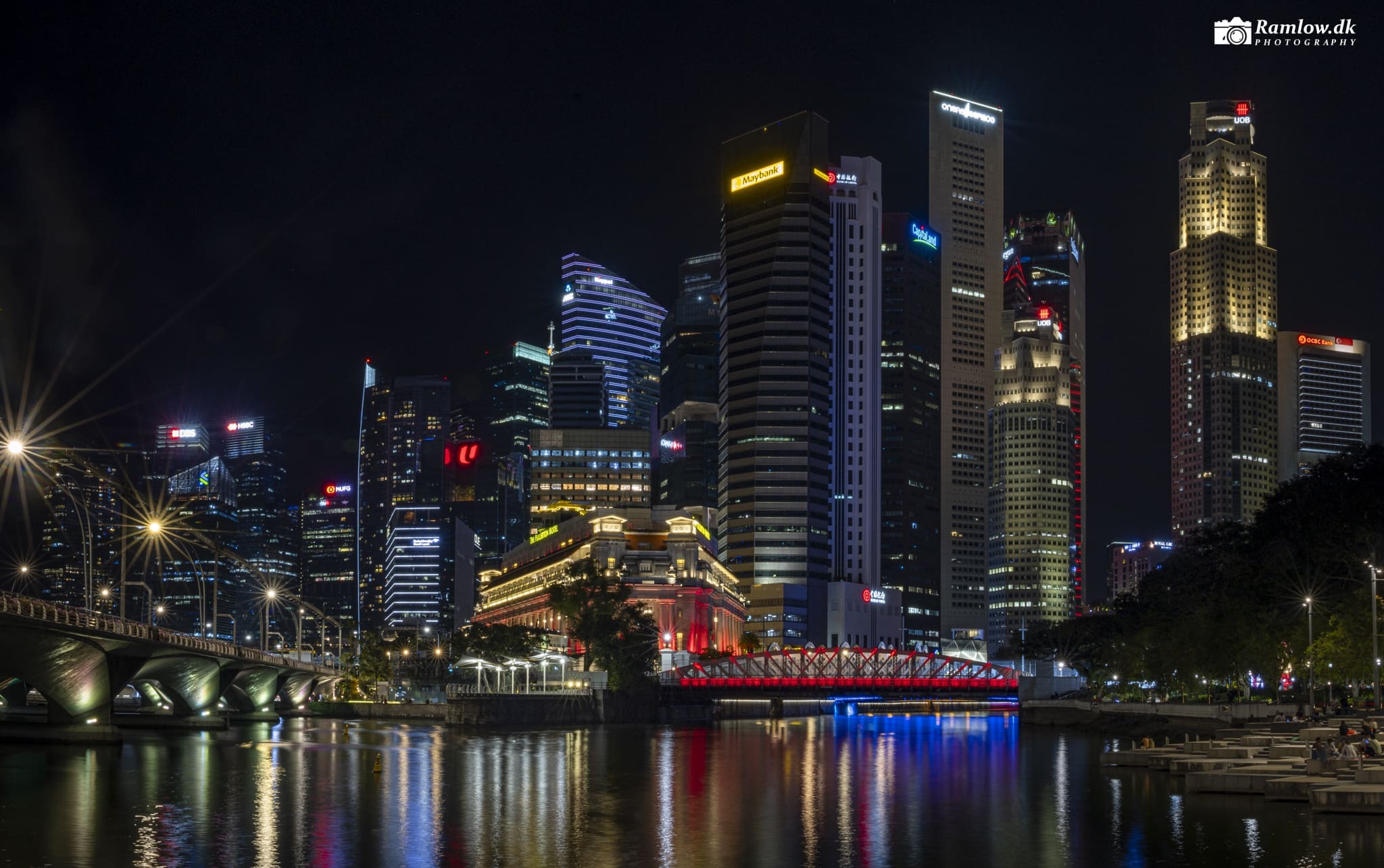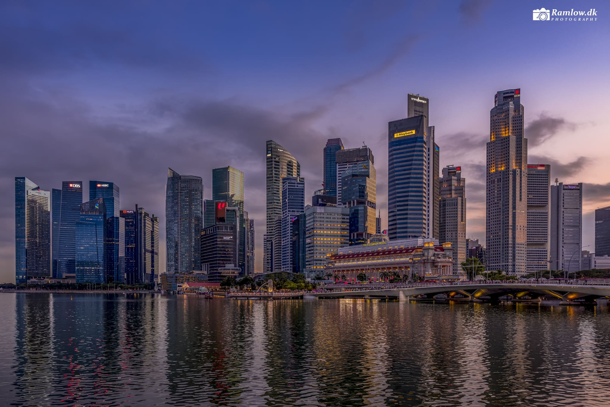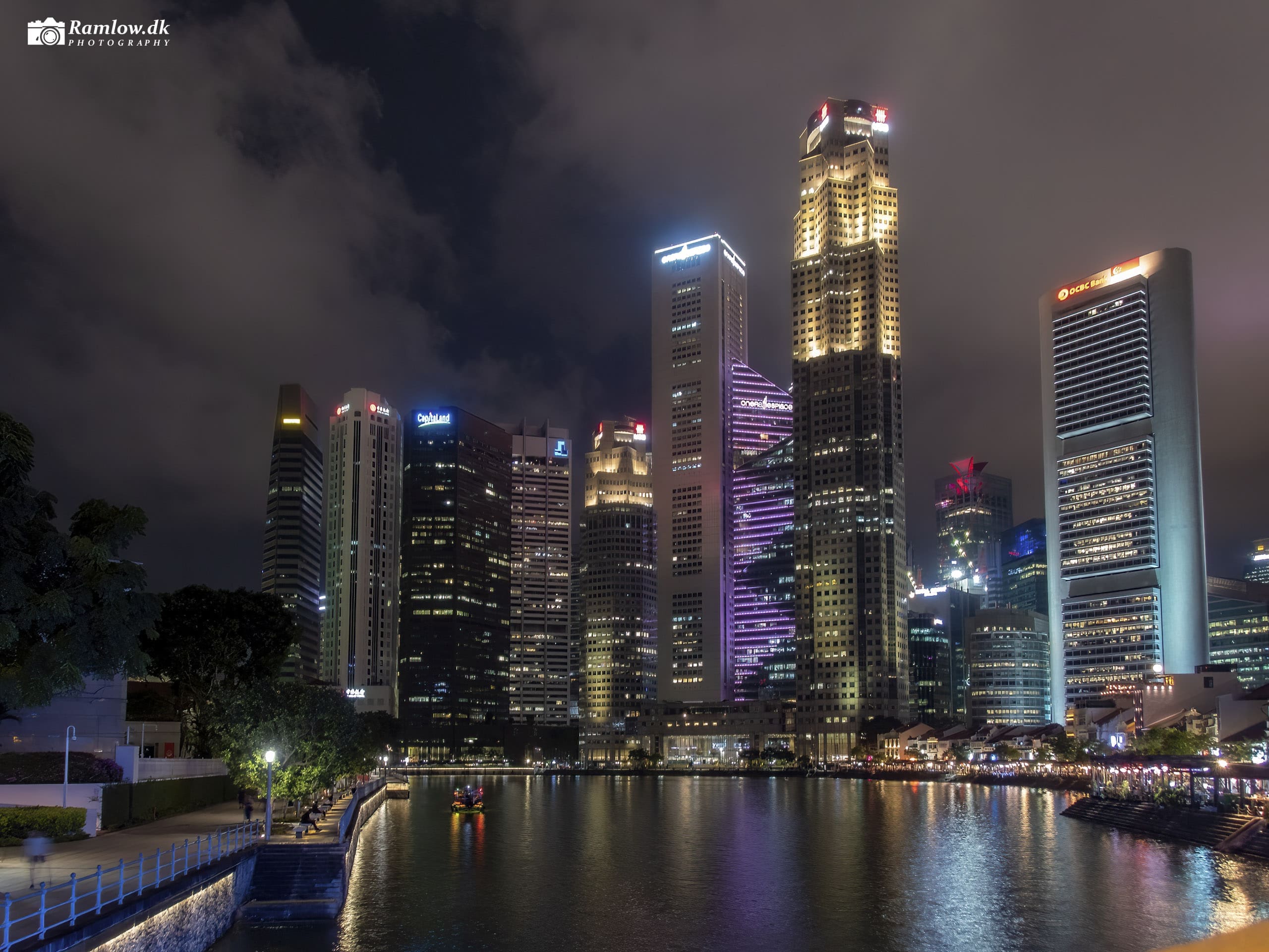 Følger man Singapore River ud mod Marina Bay, åbner skyline sig i stor skala. Disse billeder er taget i solnedgang, aftenmørke og under et dramatisk skydække – hver foto med sin stemning. Jeg har altid kameraet med, når Lisa og jeg går tur i byen. Singapore er fotogen, stemningsfuld, og to dage er aldrig ens.